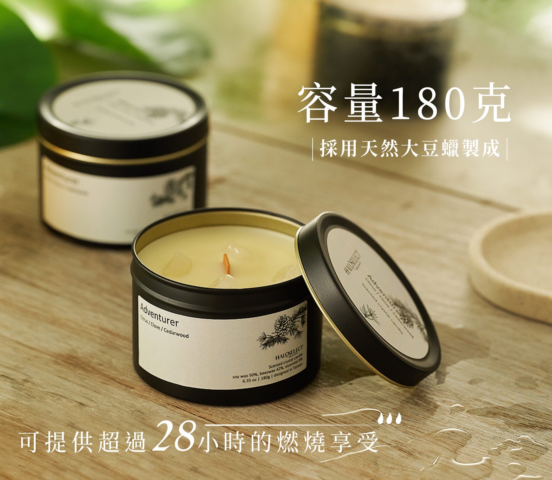 蠟燭以消光黑的鐵罐包裝